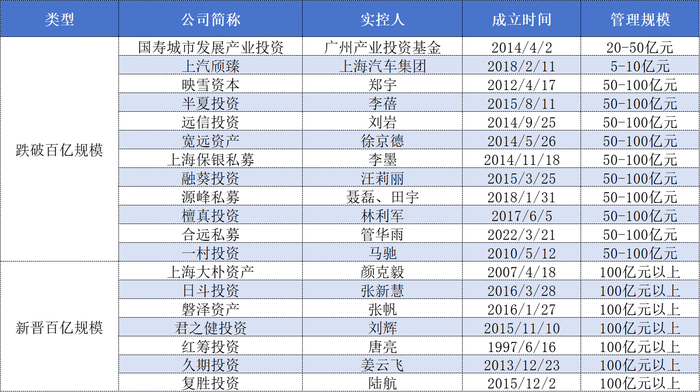 近期跌破百亿规模的主要有合远私募和一村投资(现已改名为“上海承壹私募”)。