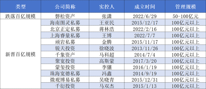 表格:今年以来百亿主观私募变动情况数据来源:中基协、私募排排网、界面新闻整理