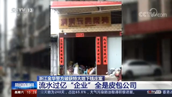 浙江省金华市武义县公安局副局长李浩:从广东到我们义乌,一年的资金流量有100多亿,但是我们所掌握的这些公司,我们到实地查看以后发现这些公司,基本上都是一些皮包公司,或者公司这个地点其实就是一个农户家里,或者就是说一些居民家里,根本不存在一些企业,不可能产生100多亿的经济贸易,所以说这个就是我们确信这些资金是非法使用。