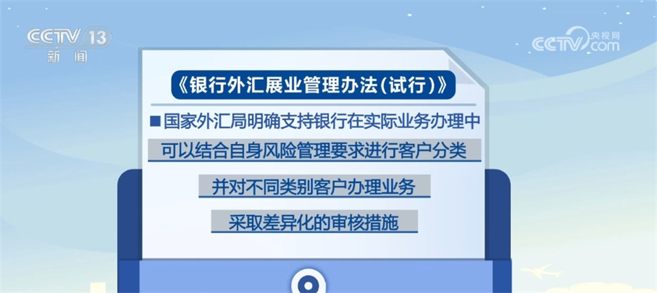 据了解,本次发布的《展业办法》,国家外汇管理局明确支持银行在实际业务办理中,可以结合自身风险管理要求进行客户分类,并对不同类别客户办理业务采取差异化的审核措施。此外,《展业办法》要求,推进商业银行外汇业务流程再造,构建包含事前客户识别与分类、事中差异化审查、事后监测报告的全流程展业框架,进一步提高银行外汇业务办理效率,提升跨境贸易和投融资便利化水平。