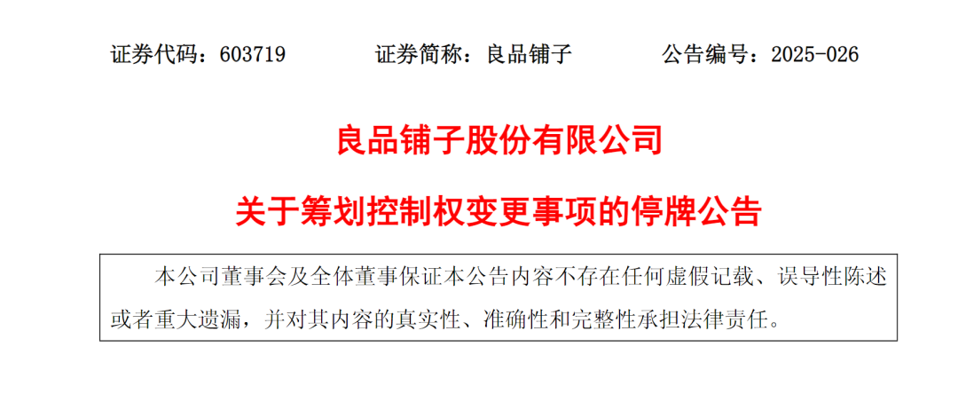 此前7月10日,良品铺子公告,公司近日收到控股股东宁波汉意创业投资合伙企业(有限合伙)(简称“宁波汉意”)通知,其正在筹划重大事项,该事项可能导致公司控制权发生变更。公司股票将于7月11日(星期五)上午开市起停牌,预计停牌时间不超过2个交易日。