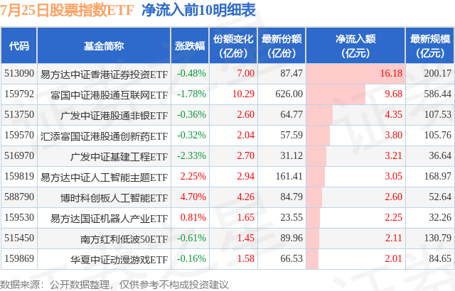 mt5:【ETF观察】7月25日股票指数ETF净流出1779亿元