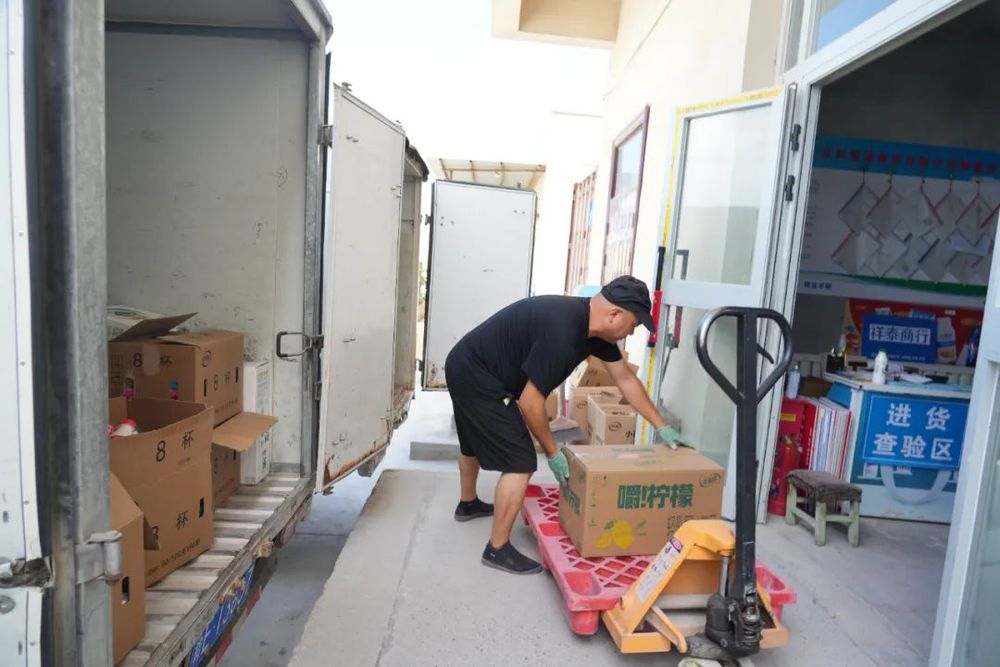 近日,在新疆博乐市和瑞源商贸有限公司仓库内,各类饮品、奶制品琳琅满目,工作人员有条不紊地装载货物,满载的货车即将发往博州各地。