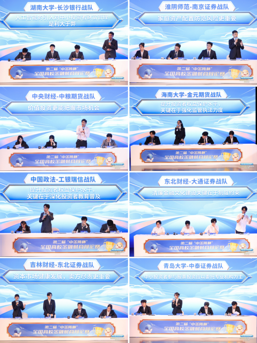 晋级赛此前在“5・15 全国投资者保护宣传日”及防范非法证券期货基金宣传月期间举办,19支高校队伍激烈角逐,最终8支高校战队脱颖而出晋级决赛。