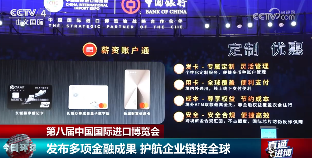 中国银行在本届进博会上发布“中银环球薪”全球发薪产品,精准破解“走出去”企业跨境发薪中的流程繁琐、效率低等痛点问题,打造海外从发薪到用薪的全链路服务体系,为企业全球发展提供更加坚实的金融支撑。